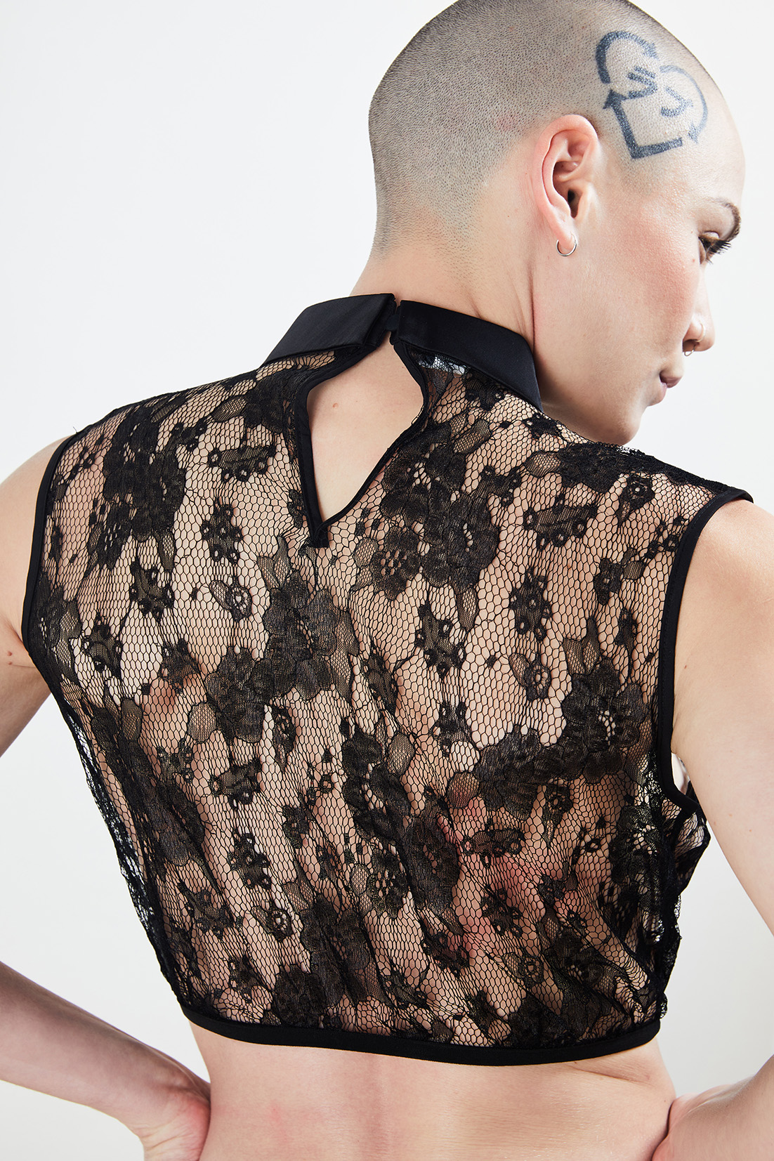 Crop-Top LA VERTU en dentelle noire