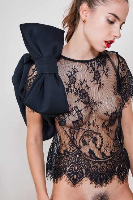 Forme originale pour un décolleté plongeant, il s’ouvre sur le devant grâce aux aimants dorés placé dans le cou et à l’entre-seins. Dentelle sur la poitrine et tulle dans le décolleté. Armature courte pour un maintien léger.